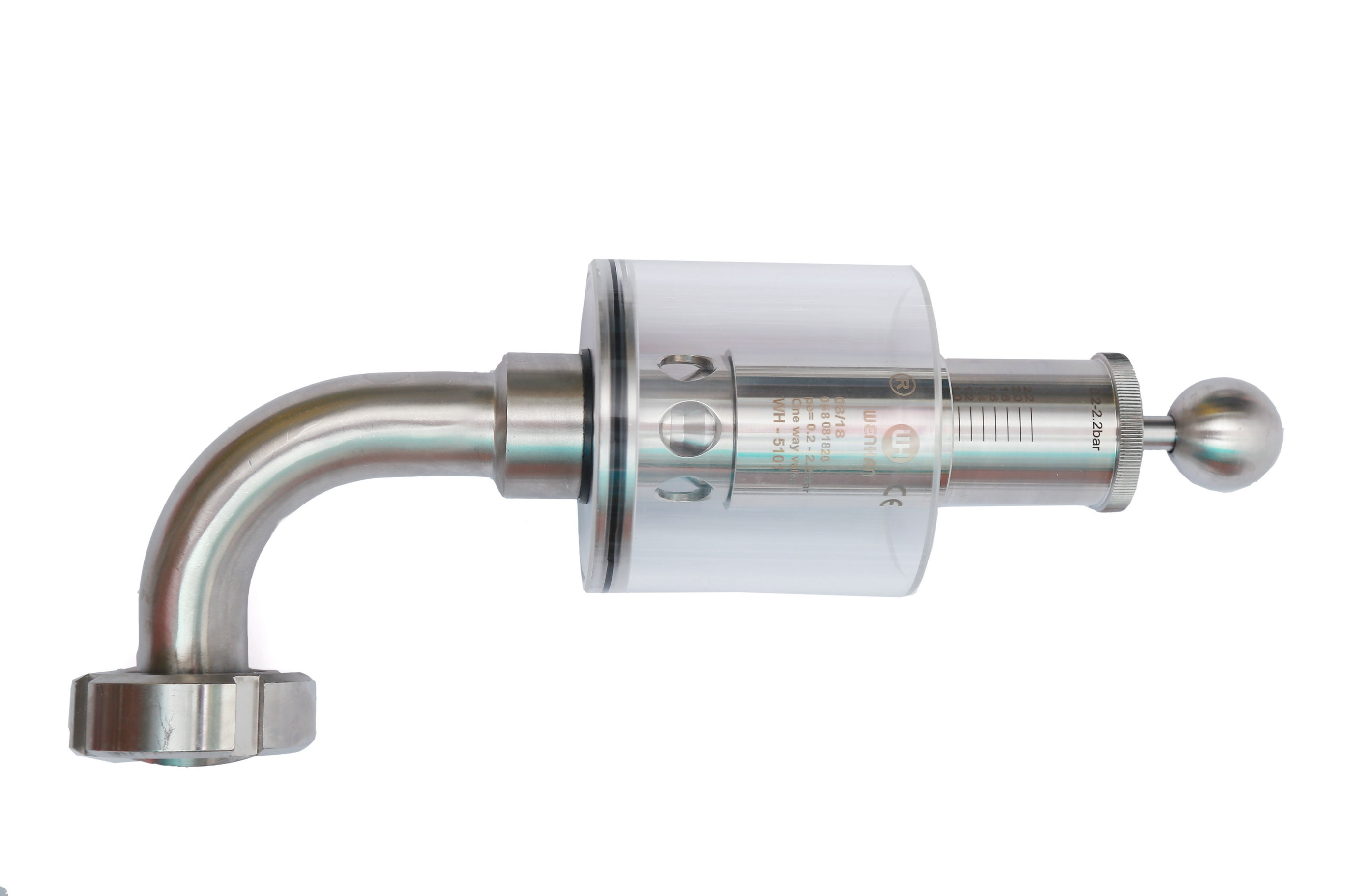 該閥門應用于壓力容器式管路系統上 調節(jié)單向排氣閥保護容器壓力過高防爆作用,當壓力高于設定壓力(標準1BAR)時可以排氣,反之關閉,調節(jié)桿標上壓力刻度,所需壓力按刻度上調整,該閥門使用方便,刻度準確,玻璃罩加水能看到發(fā)酵效果,減少染菌。同時也可以滿足于各種生產工藝需求,適用于各種食品加工,啤酒,飲料以及制藥等各種工業(yè)領域。