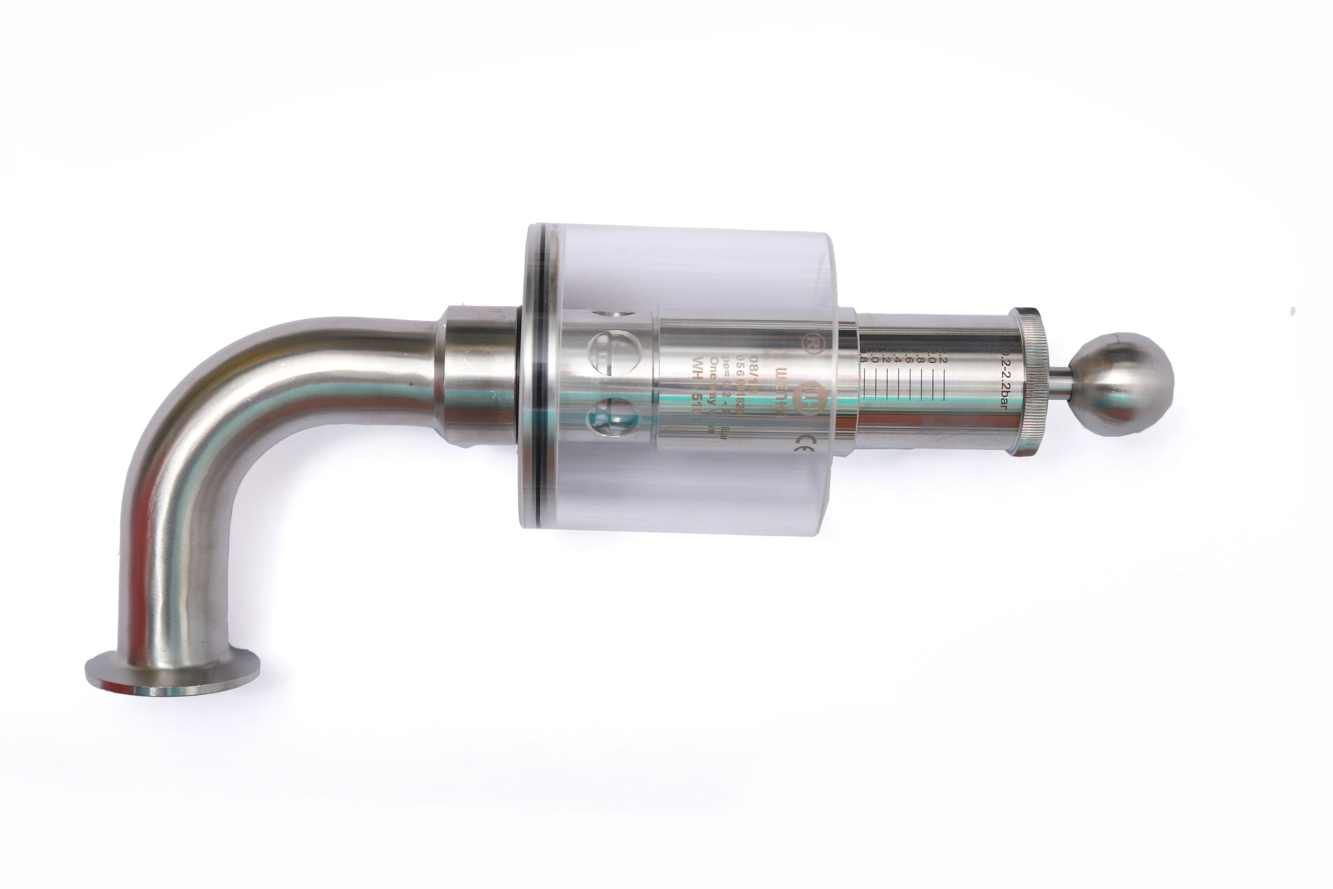 調(diào)節(jié)單向排氣閥保護(hù)容器壓力過(guò)高防爆作用,當(dāng)壓力高于設(shè)定壓力(標(biāo)準(zhǔn)1BAR)時(shí)可以排氣,反之關(guān)閉,調(diào)節(jié)桿標(biāo)上壓力刻度,所需壓力按刻度上調(diào)整,該閥門使用方便,刻度準(zhǔn)確,玻璃罩加水能看到發(fā)酵效果,減少染菌。同時(shí)也可以滿足于各種生產(chǎn)工藝需求,適用于各種食品加工,啤酒,飲料以及制藥等各種工業(yè)領(lǐng)域。